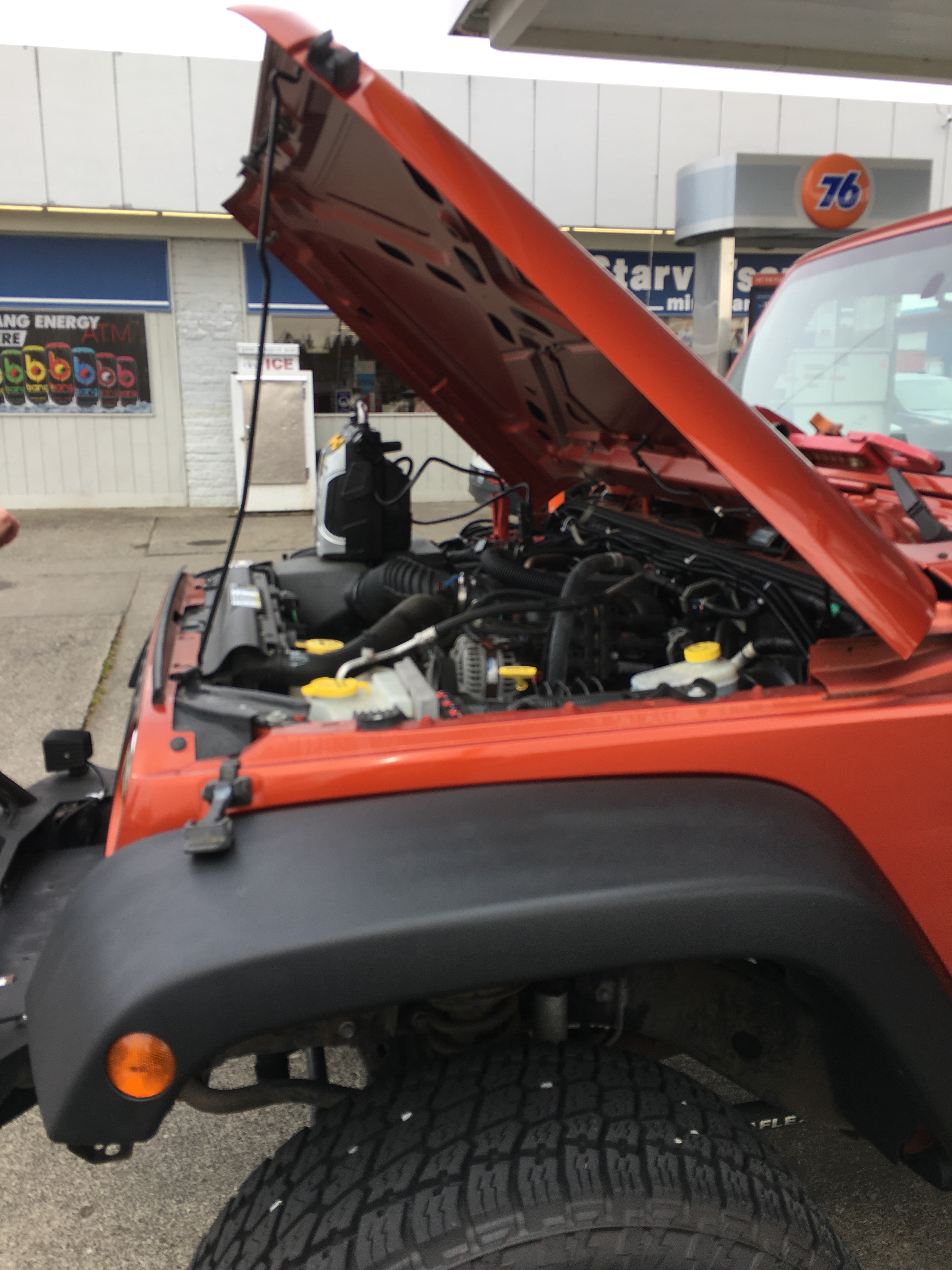 Nothing. I turned the key and I got nothing. Not a click. Not whir. Not a breath of life. Dead. Many things are going on inside my head at this point. I’m still excited, but not the way I’d like to be. The loudest thought I have is “Are you F*@#ingh Kidding Me?!” I immediately called the dealer who descended on the 76 service station in a matter of seconds, as I only made it 500 effing feet from the dealership before the damn thing broke. This would be the first and easiest fix of my journey east. A loose battery connection from removing the defunct winch from the front bumper. Of course! Servicemen got under the hood, made a few adjustments and again I was on my way.